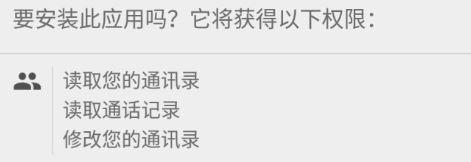 Android权限获取可以分成两个阶段,在Android 6.0之前,所申请的权限只要在AndroidManifest文件中列举就可以了,并会在程序安装时全部显示在安装页面上,这个过程并不区分权限是否为常规权限还是正常权限。这种方式是造成早期Android系统在隐私性做的不好的直接原因,因为用户在安装应用程序时,很多时候并不会去仔细查看程序弹出的方框到底包含了哪些危险的权限,为了尽快的进入程序首页,一般都会同意全部弹出的权限,这就给了很多流氓程序肆意发挥的入口。下图展示了Android 5.0安装界面的部分危险权限截图。