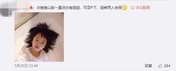 还有人说:“你爸爸以前一直说你又姐姐,可否P下姐弟两人合照”,费曼也做到了↓