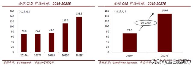 CAE:根据Grand View Research 的数据,2019 年全球CAE 市场规模为73 亿美元,预测2027 年全球CAE 市场规模将达到149 亿美元。