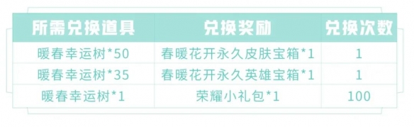 活动总共分为四期,每期活动持续一周,完成每周的任务收集暖春幸运树,可免费兑换永久皮肤/英雄等超值大礼;