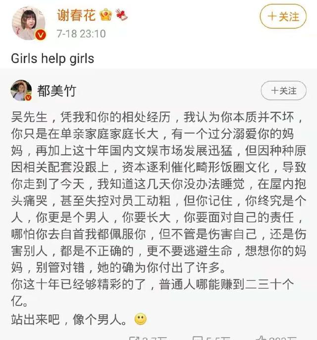 都美竹发文让吴亦凡敢于承认,要他男人一点。