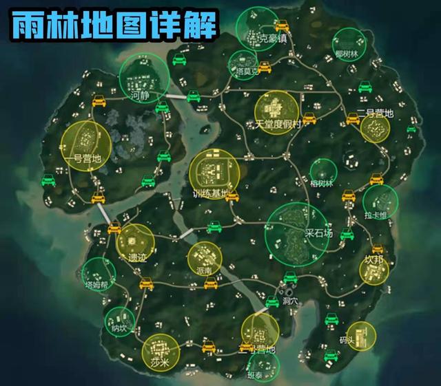 热带雨林一局的时长在20分钟左右,整个地形中最突出的就是草木茂盛,适合伏地魔肆意生长!虽然说这个地图比较适合伏地魔,但是它的出名并不仅仅是这个,他也有许多钢枪地点,雨林最危险的地方,一是天堂度假村,二是自闭城,三是祭坛,这些是雨林地图中落地最刚到地点!雨林地图的物资尤其丰富,并且他还有一款只在这个地图投放的枪械QBZ,这个枪械射速堪称步枪中的王者!这个地图对新手来说并不是很友好,很多时候还没看到敌人在哪里,自己就成盒了。同时在这个地图中载具是比较少的,多数是电瓶车,车速慢并且很容易被打爆,并不建议大家驾驶。另外在雨林地图中,小姐姐很多哦!