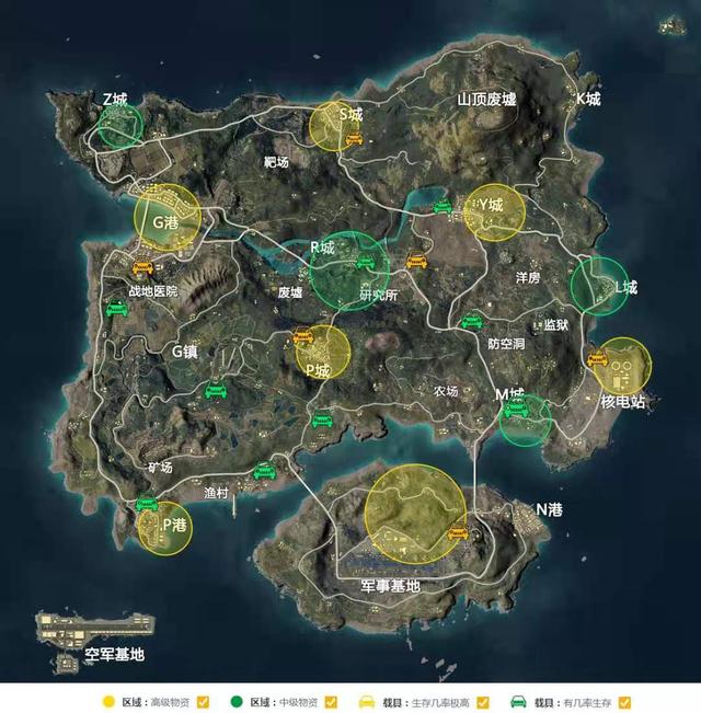 那么玩海岛需要注意哪些事情呢?首先是避开几个危险的点,比如N港,G港,机场,大桥,这些点只适合那些身法好,技术强的玩家过去,不然很容易落地变成盒子精,并不建议大家尝试,当然如果你想要跳这些地方呢也不是不可以,那么就尽量跳这些点附近的房区,一是人少,二是搜完装备还可以偷袭一波那些钢枪王!我最喜欢跳的点是S城,L城,核电站,一是因为跳这些地方的人要少一点,二是这些都在地图的边角位置,我们搜完装备之后进圈可以确保我们背后不会有人偷袭,而且附近一般都有刷车,交通也比较方便!