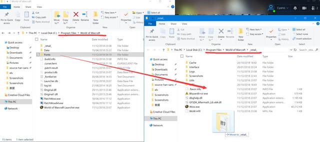 需要注意的是战网的自动更新,虽然可以把魔兽世界的文件夹结构改成新版的,但是字体文件夹并不会跟着一起移动到新的文件夹下。在你更新完游戏后可能会出现游戏字体变成默认的情况,所以请手动把 Fonts 文件夹移动到 _retail_ 文件夹下。