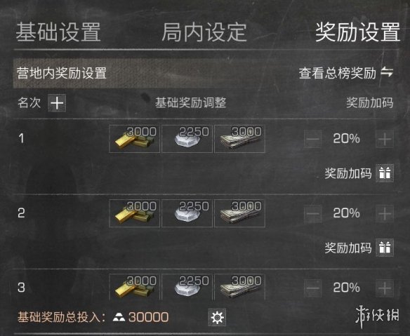 营地内所有奖励由创办者提供,而营地外所有奖励将由贸易联盟免费提供该名次对应营地内奖励的20%。