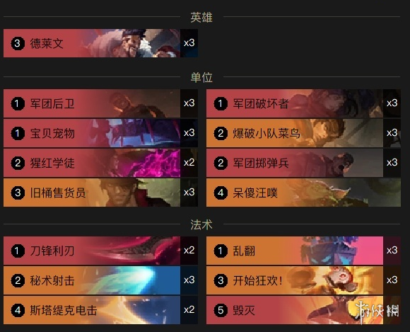 1费:军团后卫x3;军团破坏者x3;宝贝宠物x3