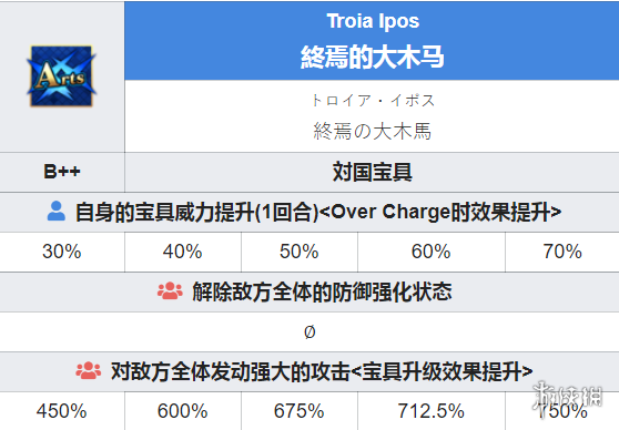 简评:前置宝威配合被动蓝魔放,使得奥德修斯的宝具伤害摆脱了水枪的行列。解除全体防御强化状态可以说无视了非锁定的无敌/闪避等特效,保证了全队的伤害不被规避。不过说实话在高难大部分是锁定技能的情况下能否发挥出来还得看设计师眼色。