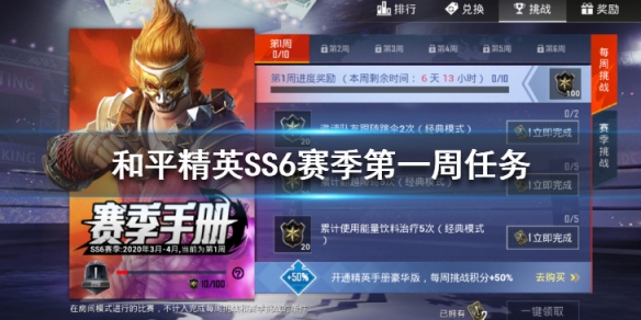 和平精英SS6赛季第一周挑战任务怎么做?今天不但游戏更新到了SS6赛季,赛季手册任务也重新开启了,那么这一周的任务都有哪些呢?下面快和小编一起来看看这一周的任务吧!