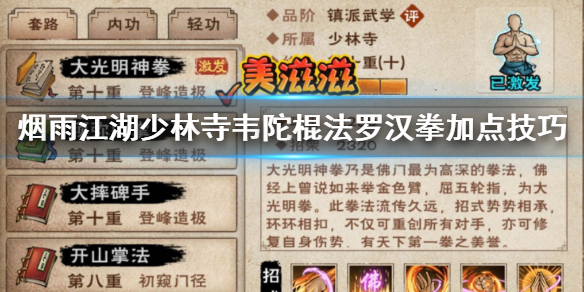 《烟雨江湖》少林寺韦陀棍法加点方法 罗汉拳加点升级技巧