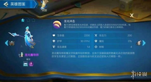 技能:圣光冲击(蓄力3秒后释放圣光冲击波,对路径上的敌人造成600/900/1200伤害。每蓄力1秒提高200/300/400点魔法伤害,蓄力被打断会立刻释放。)