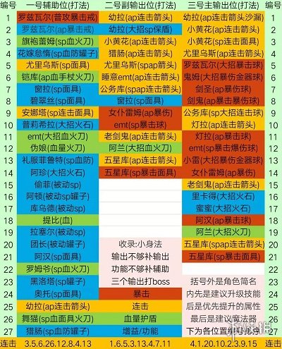 数字是对应位置的编号,队伍中数字的排序为小编认为适合担当队伍该位置的推荐度。