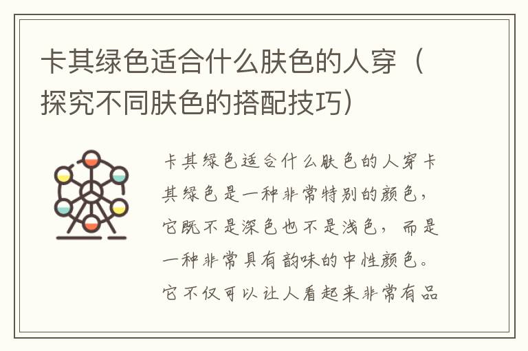 卡其绿色适合什么肤色的人穿(探究不同肤色的搭配技巧)