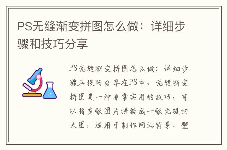 在PS中,无缝渐变拼图是一种非常实用的技巧,可以将多张图片拼接成一张无缝的大图,适用于制作网站背景、壁纸等。下面我们就来详细介绍一下如何使用PS制作无缝渐变拼图。