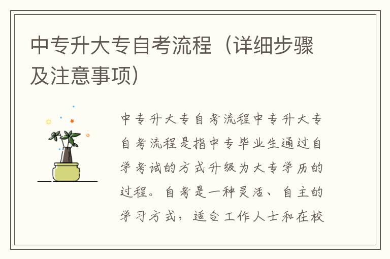 中专升大专自考流程是指中专毕业生通过自学考试的方式升级为大专学历的过程。自考是一种灵活、自主的学习方式,适合工作人士和在校生。下面就为大家介绍一下中专升大专自考的详细步骤及注意事项。
