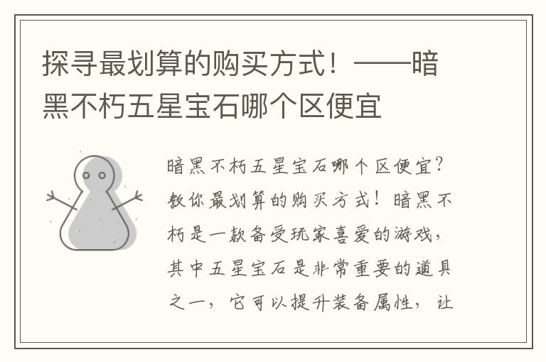 暗黑不朽是一款备受玩家喜爱的游戏,其中五星宝石是非常重要的道具之一,它可以提升装备属性,让你在游戏中更加强大。然而,五星宝石的价格也是相当昂贵的,那么在哪个区购买最划算呢?本文将为大家详细介绍最划算的购买方式。