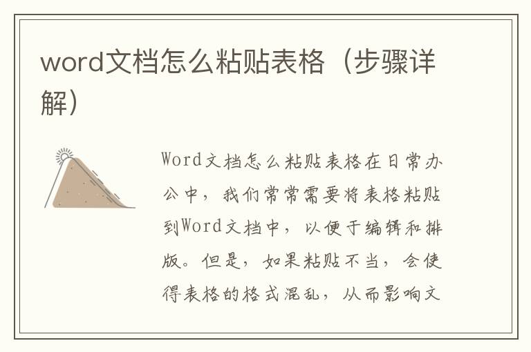 在日常办公中,我们常常需要将表格粘贴到Word文档中,以便于编辑和排版。但是,如果粘贴不当,会使得表格的格式混乱,从而影响文档的美观程度和可读性。下面,我们将详细介绍如何在Word文档中粘贴表格,以便于大家在工作中更加高效地处理表格内容。