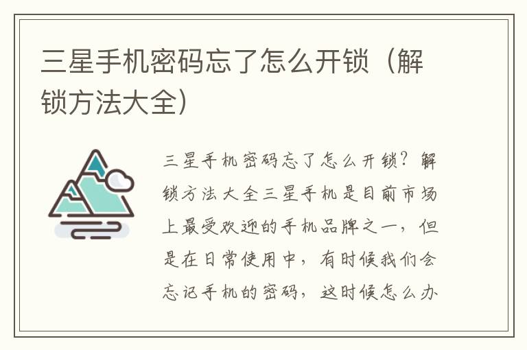 三星手机密码忘了怎么开锁(解锁方法大全)