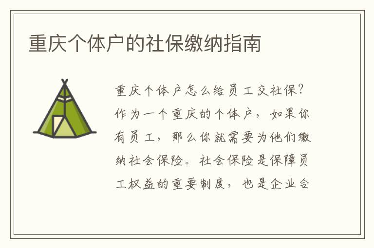 作为一个重庆的个体户,如果你有员工,那么你就需要为他们缴纳社会保险。社会保险是保障员工权益的重要制度,也是企业合法经营的必要条件之一。下面,我们来看看重庆个体户如何给员工交社保。