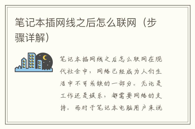 在现代社会中,网络已经成为人们生活中不可或缺的一部分。无论是工作还是娱乐,都需要网络的支持。而对于笔记本电脑用户来说,插上网线后如何联网也是一个需要掌握的基本技能。下面,本文将为大家详细介绍笔记本插网线之后如何联网的步骤。