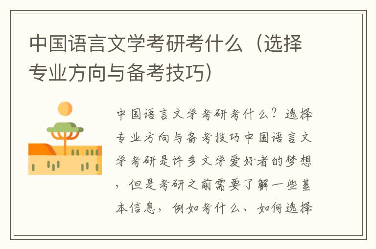 中国语言文学考研考什么(选择专业方向与备考技巧)