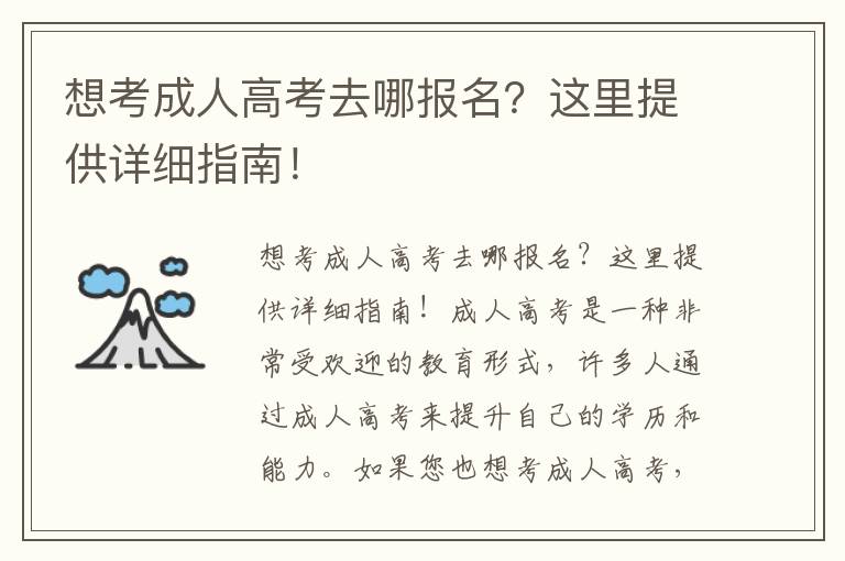 以上就是关于想考成人高考去哪报名的详细指南。希望这篇文章能够帮助到您,让您顺利参加成人高考,提升自己的学历和能力。如果您还有其他问题,可以咨询当地教育部门或相关学校的招生办公室。祝您考试顺利,取得好成绩!