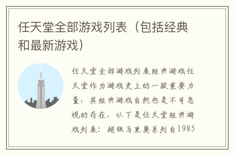 任天堂全部游戏列表(包括经典和最新游戏)