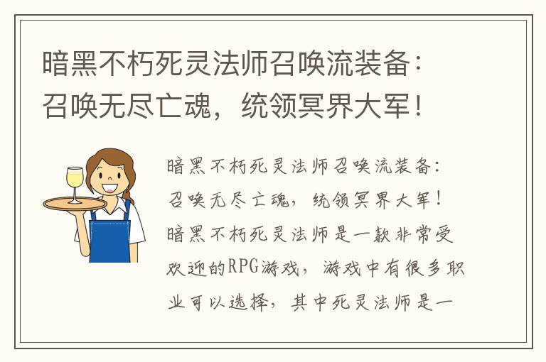 召唤流装备是暗黑不朽死灵法师中非常重要的装备之一,它可以让死灵法师在战斗中召唤出更多更强大的亡灵来帮助自己作战。如果你想要成为一名强大的死灵法师,那么你一定要学会如何使用召唤流装备,召唤无尽亡魂,统领冥界大军!