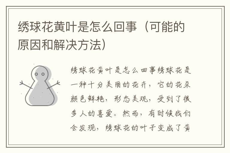 绣球花是一种十分美丽的花卉,它的花朵颜色鲜艳,形态美观,受到了很多人的喜爱。然而,有时候我们会发现,绣球花的叶子变成了黄色,这是怎么回事呢?