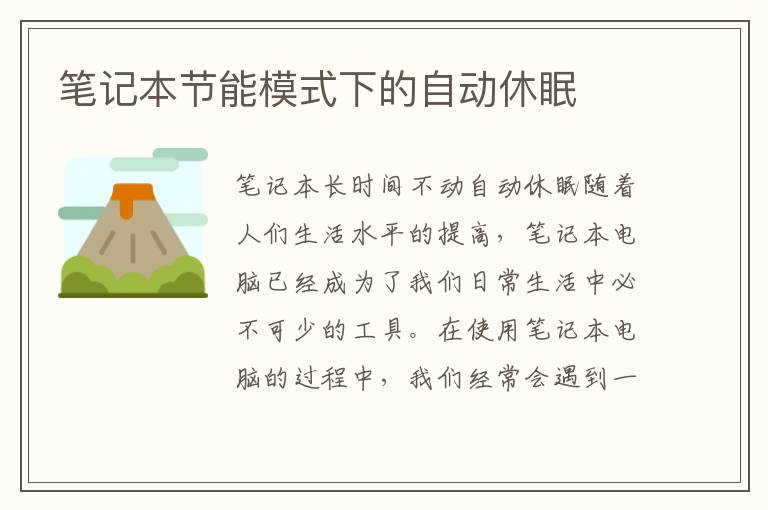 随着人们生活水平的提高,笔记本电脑已经成为了我们日常生活中必不可少的工具。在使用笔记本电脑的过程中,我们经常会遇到一个问题,就是长时间不动,笔记本会自动进入休眠模式。这个功能可以帮助我们省电,延长电池寿命,但是有时候也会给我们带来一些麻烦。接下来,我将为大家介绍笔记本节能模式下的自动休眠,以及如何进行操作。