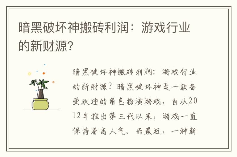 暗黑破坏神搬砖利润:游戏行业的新财源?