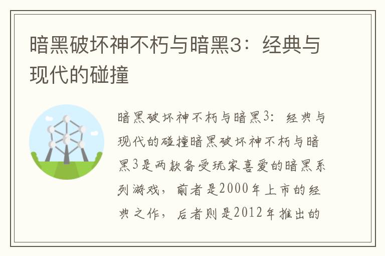 暗黑破坏神不朽与暗黑3是两款备受玩家喜爱的暗黑系列游戏,前者是2000年上市的经典之作,后者则是2012年推出的现代大作。这两款游戏在玩法、画面、音效等方面都有着明显的差异,但它们共同的魅力却让人无法抗拒。在这篇文章中,我们将探究暗黑破坏神不朽与暗黑3之间的碰撞,以及它们各自的特点和操作步骤。