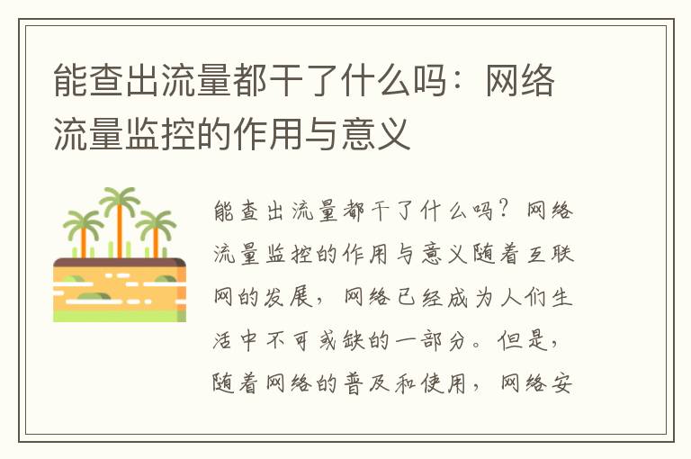 能查出流量都干了什么吗:网络流量监控的作用与意义