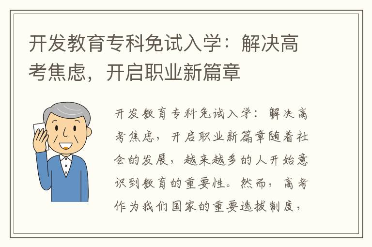 开发教育专科免试入学:解决高考焦虑,开启职业新篇章