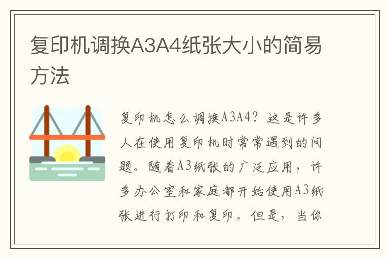 复印机怎么调换A3A4?这是许多人在使用复印机时常常遇到的问题。随着A3纸张的广泛应用,许多办公室和家庭都开始使用A3纸张进行打印和复印。但是,当你需要打印或复印A4纸张时,你又该怎么办呢?在本文中,我们将为您介绍几种简单的方法,帮助您快速地调换A3A4纸张大小。