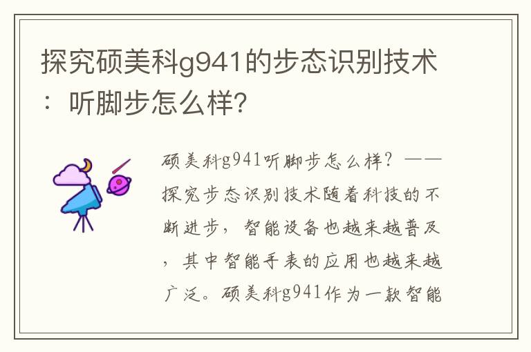 随着科技的不断进步,智能设备也越来越普及,其中智能手表的应用也越来越广泛。硕美科g941作为一款智能手表,其步态识别技术备受关注。那么,硕美科g941听脚步怎么样呢?下面我们就来探究一下。