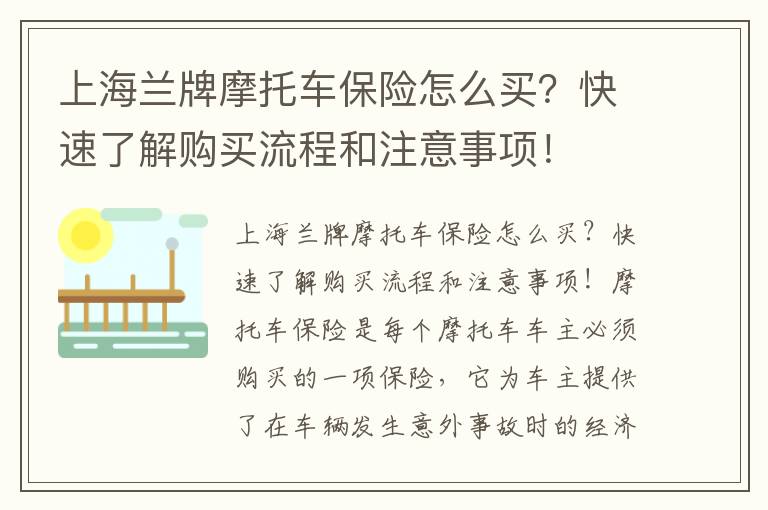 上海兰牌摩托车保险怎么买?快速了解购买流程和注意事项!