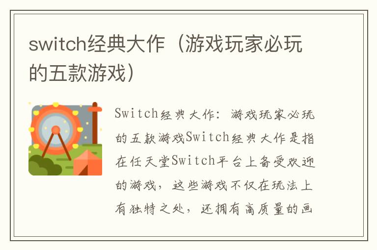 Switch经典大作是指在任天堂Switch平台上备受欢迎的游戏,这些游戏不仅在玩法上有独特之处,还拥有高质量的画面和音乐。在这里,我们将为您介绍五款Switch经典大作,这些游戏不仅是游戏玩家必玩的游戏,也是值得所有人一试的游戏。