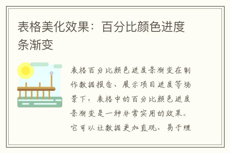 导读 表格百分比颜色进度条渐变在制作数据报告、展示项目进度等场景下,表格中的百分比颜色进度条渐变是一种非常实用的效果。它可以让数据更加直观、易于理解,同时也能增加页面的
