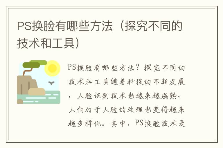 随着科技的不断发展,人脸识别技术也越来越成熟,人们对于人脸的处理也变得越来越多样化。其中,PS换脸技术是一种非常流行的处理方式。那么,PS换脸有哪些方法呢?本文将会为大家详细介绍。