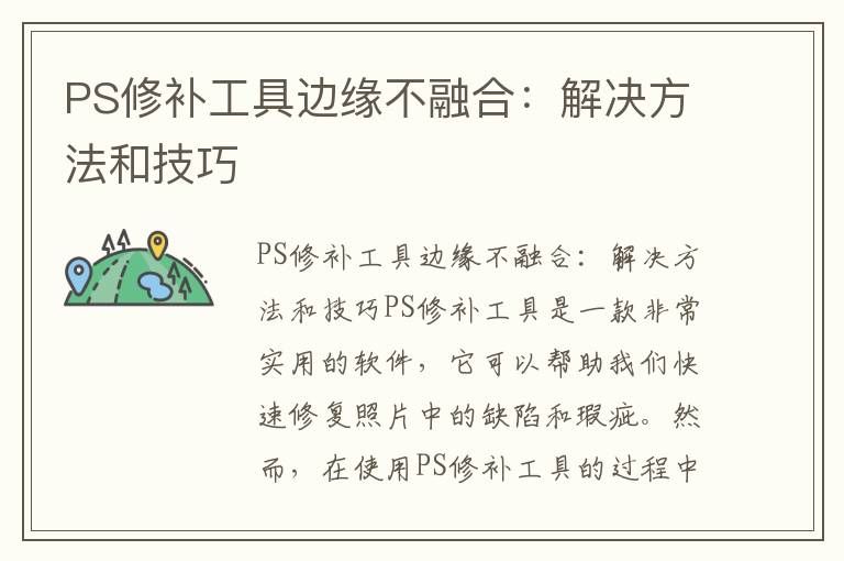 PS修补工具是一款非常实用的软件,它可以帮助我们快速修复照片中的缺陷和瑕疵。然而,在使用PS修补工具的过程中,我们有时会遇到一个问题,那就是边缘不融合的情况。这个问题很常见,但是它也很容易解决。本文将为大家介绍PS修补工具边缘不融合的解决方法和技巧。
