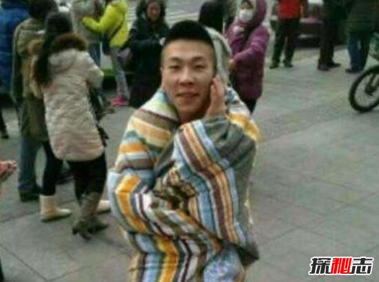 这个1991年出生的小伙儿说,照片中的地震哥就是他,他家住在沈阳铁西沈辽路,地震的时候,他刚刚睡醒。新文化:地震发生的时候,你在干什么?“地震哥”:我起来小解,然后就地震了。发现是地震,我还只穿着短裤,就扯着被子出去了。新文化:你估计你跑21层楼花了多少时间呀?“