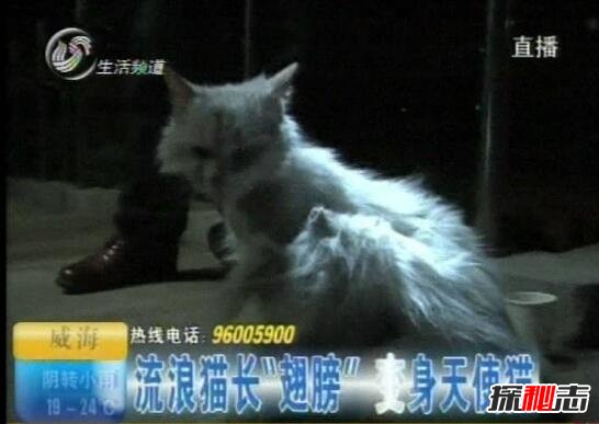 4、1975年12月,在英国曼彻斯特附近,人们也捕获过一只长翅膀的猫,长相与其他猫没有什么不同,就是多了对20厘米长的翅膀。在中国的湖北、天津、河北、四川等地也有出现长着翅膀的猫的出现,但这些被发现的猫的翅膀比较软,都不会飞。