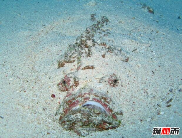 在海边探险千万不要踩错石头了,因为拥有剧毒的玫瑰毒鲉,隐藏起来的外形与石头非常相似,以至于酿成了惨剧,这也是玫瑰毒鲉被叫做石头鱼的原因。据说石头鱼的致命一刺,是让人类最为剧痛的疼,再加上石头鱼的致命毒液,可以一直让人疼痛到死。