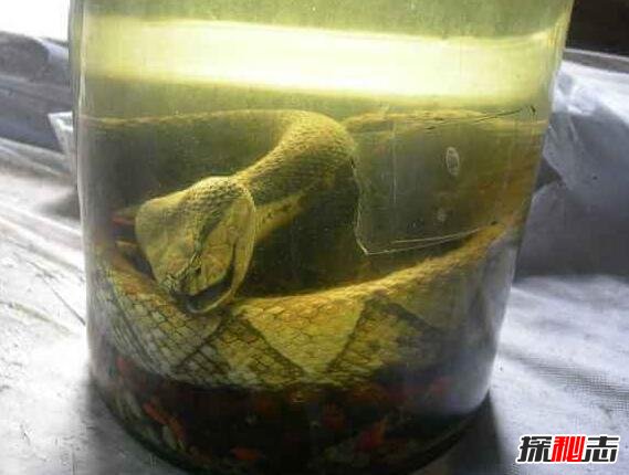 在浸泡五步蛇酒的时候,很多人在网上看到不科学的报道,说五步蛇毒进入酒中后,喝了会中毒,建议把蛇头剪掉,其实这是不科学的报道,五步蛇离开五步蛇体或五步蛇死后,或进入酒中,就会失去活性,不会有中毒的问题出现。因此,炮制五步蛇酒的时候,不需要把蛇头单独剪下来。蛇头的两侧有蛇的两个毒囊,左右各一个,这个器官是蛇用来储藏蛇毒的,蛇毒可是天然的良好物质。