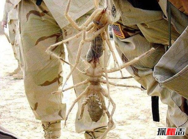 从严格意义上来讲,巨骆驼蜘蛛并不是一种蜘蛛,它们有时会被称为风蝎,有时也会被称为避日蛛。最开始并不知道巨骆驼蜘蛛有毒吗,但是与它们“战斗”过的美国大兵证明其是没有毒性的,但是其可怕的撕咬能力,让人心底发寒。