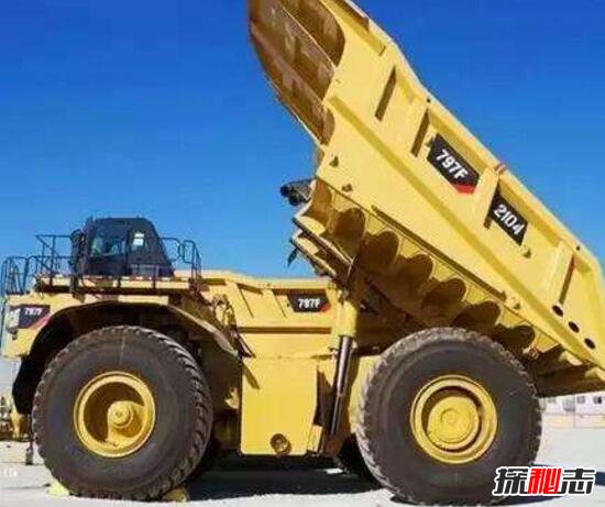 美国卡特彼勒生产的卡特彼勒797,曾被称为是世界上最大的矿车。该车载重为400吨,如果装100斤的人可以装8000人,卡特彼勒797的一个轮胎就有5.3吨重。最大的矿车卡特彼勒797,大家可以想象一下这是有多大!见过它的人无一不感叹它的庞大!
