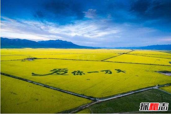 每年的七月,祁连山下一片金色的海洋,在蓝天白云和祁连雪山的点缀下,犹如一幕电影画面,令人慨叹。近百万亩的大色块简单构图具有十足的西部风情,铺天盖地的霸气给人足够的幻想。几十万亩绽放的油菜花组成了一道夺眼的风景,当蓝色、绿色、黄色在门源被大自然交汇在一起时,这种震撼人心的美是近乎不可能描绘的,这是世界十大花海之一。