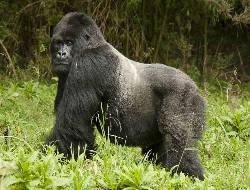 这种温和的巨人—山地大猩猩栖息在维龙加山脉的艾伯丁裂谷山地森林,由于人类的过渡砍伐和连年的战争使得山地大猩猩的栖息地受到了严重的破坏何食物的短缺,导致现在山地大猩猩已为数不多。