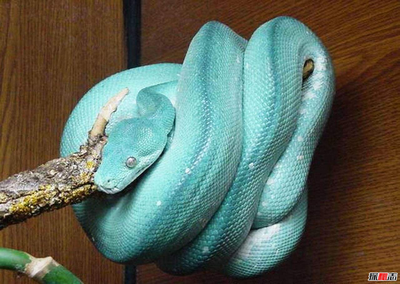 这种蓝蛇是绿蟒蛇的蓝化变异体,蓝蛇在这地球上是一种非常罕见的变异蛇,成年蓝蛇售价接近50万美元,而且是有市无价,即使有钱你也买不到。部分在印尼、新几内亚及澳洲雨林中。蓝蛇蛇身上密布蓝斑点,而且每次褪皮后篮斑点都有增加和扩大,非常漂亮、非常诡异。