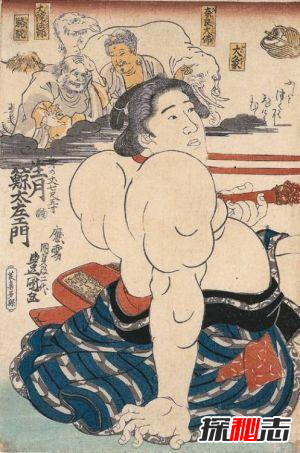 生月鲸太左卫门,据说身高2.27米,体重169公斤,被称为日本第一巨汉力士。他是1827年—1850年江户时期的肥前国松浦郡人。从小帮助父亲出海捕鲸鱼,据说14岁的时候能一个人独立捕杀鲸鱼,被称为“鲸吉”。曾说他喜欢矮小的女性,因为纵欲过度,染上了梅毒,24岁就病死了。